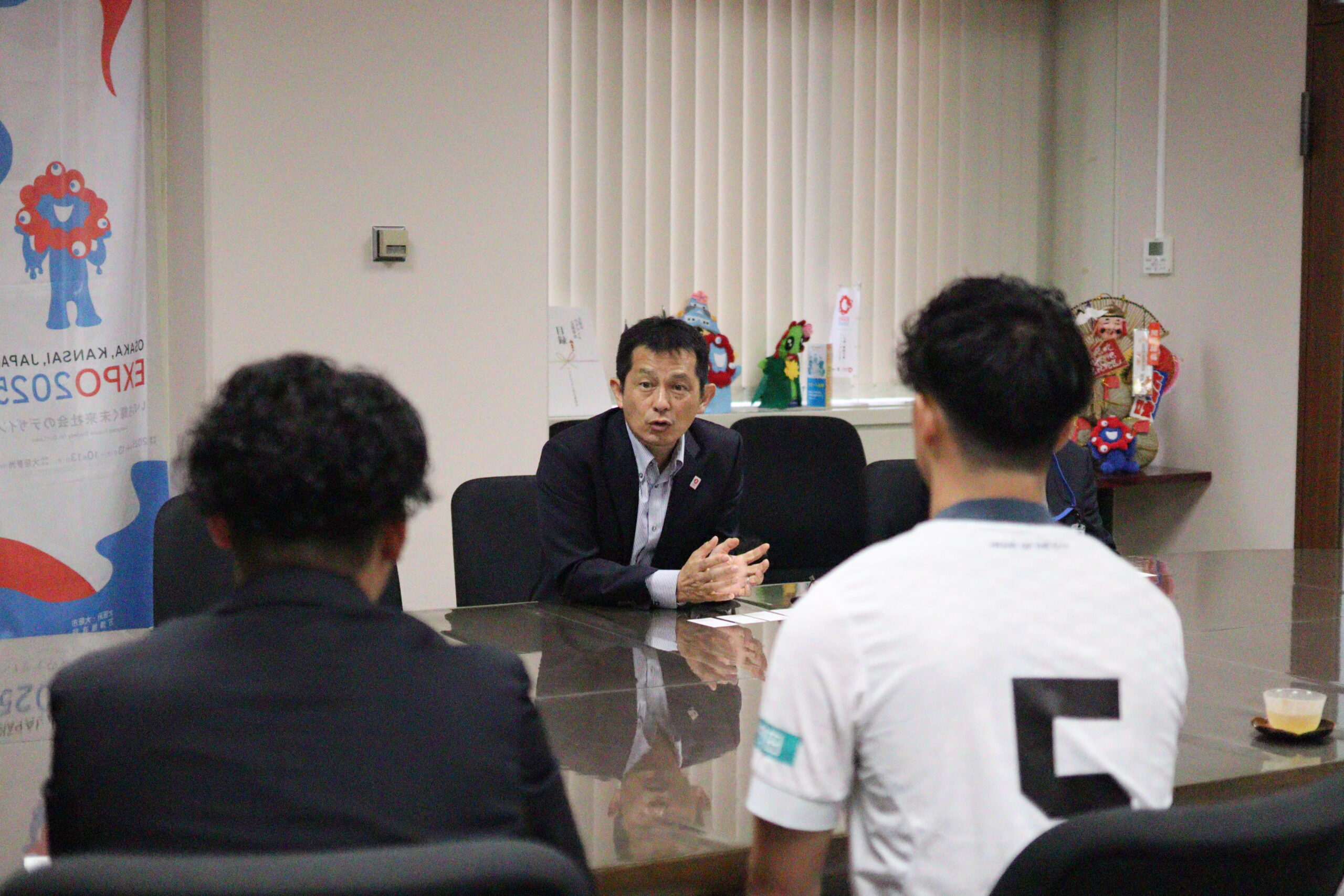 この度、OsakaCitySCでは9月25日(木)、大阪市中央区役所を訪問し、松田彰久区長を表敬訪問いたしました。