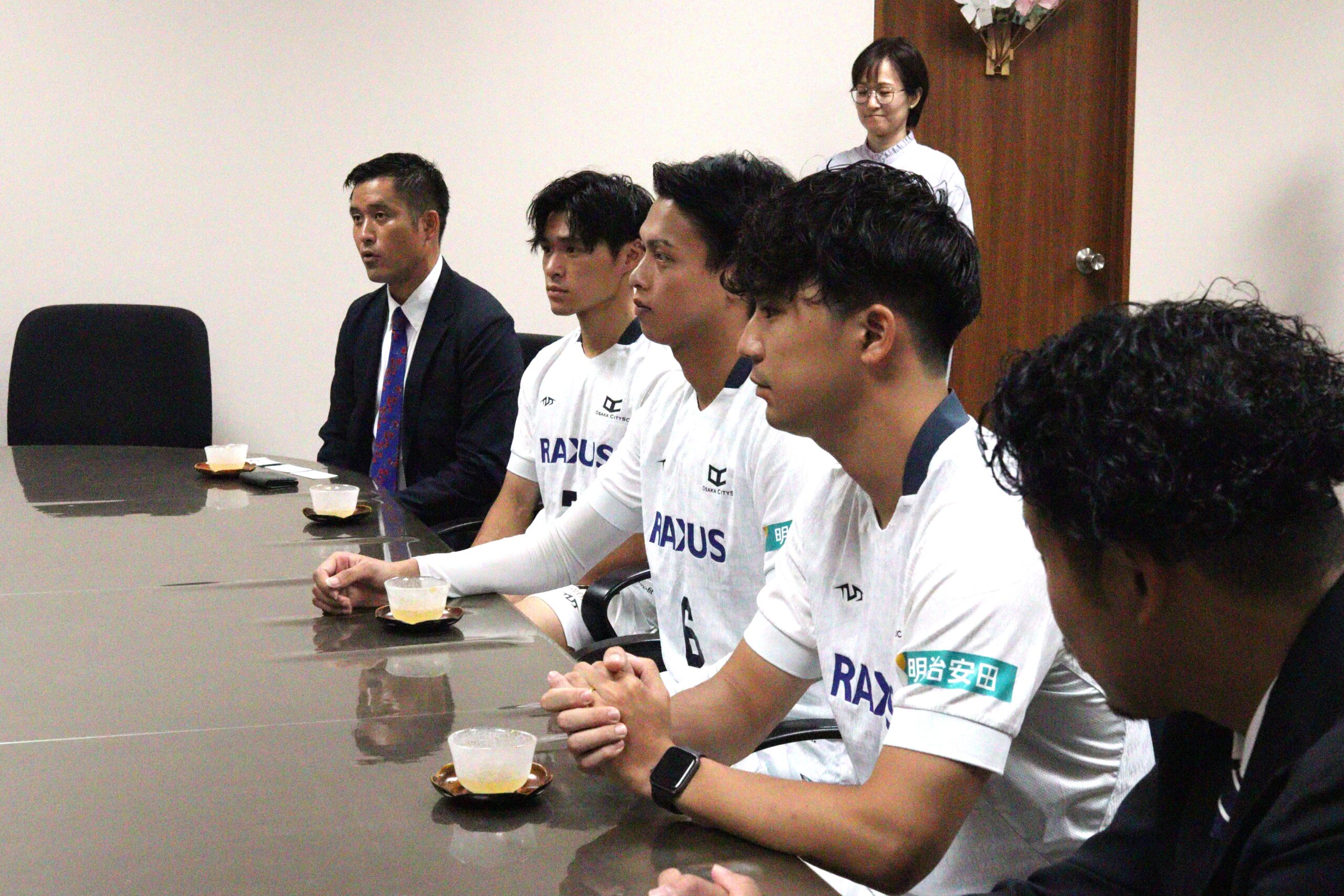 当日は弊社代表の山地泰平をはじめ、監督、選手3名が同席し、クラブの活動状況や今後の目標についてご報告させていただきました。